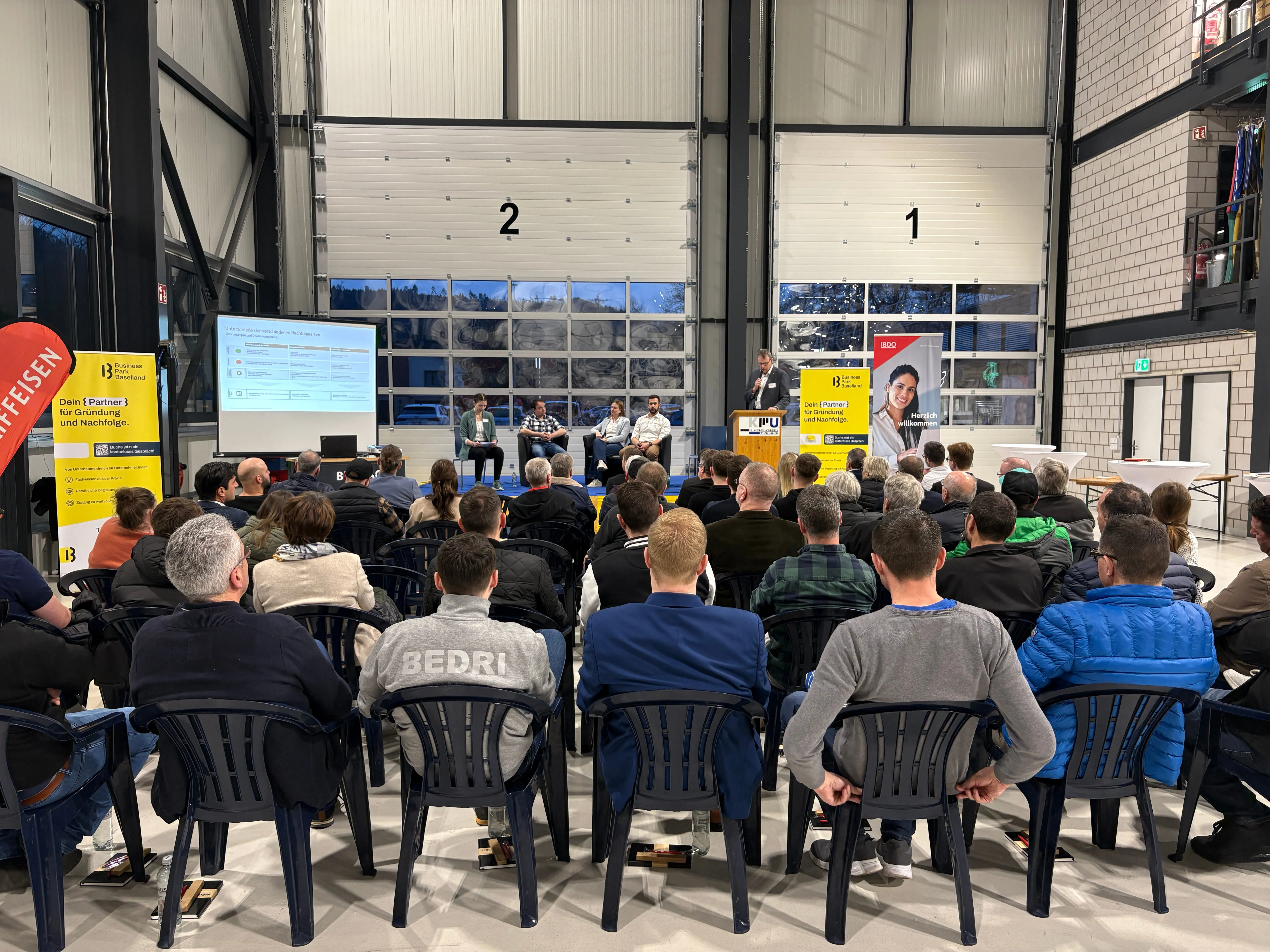 Ein herzliches Dankeschön an unsere Gastgeber und Referenten– Michele Matt (Business Park Baselland), Karin Vollenweider (Moderation), John Brosi (BDO AG) und Christoph Rubin (Raiffeisenbank Laufental-Thierstein) – für ihre wertvollen Einblicke aus Praxis, Beratung und Finanzierung.